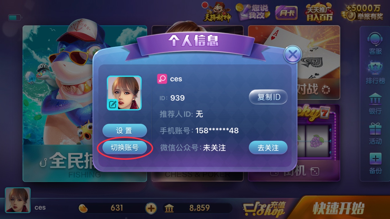 点击左下角的个人头像,打开个人信息界面,点击切换账号返回登陆界面,选择需要的登陆方式进行登录。